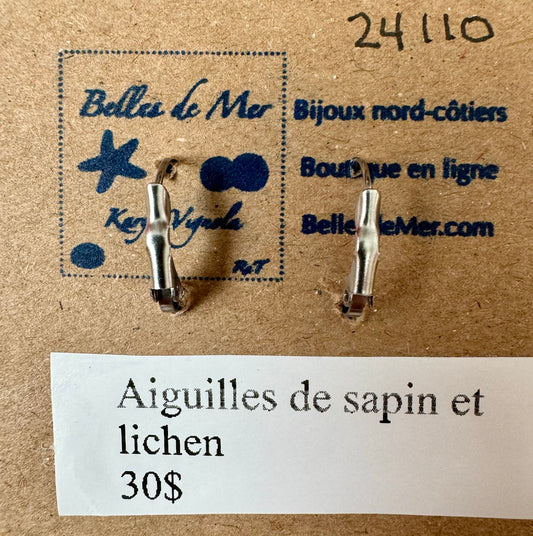 Boucles d'oreilles aiguilles de sapin, lichen et petite oseille
