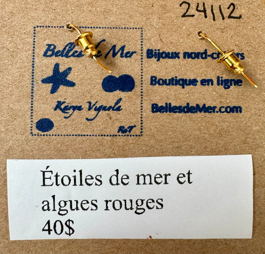 Boucles d'oreilles algues rouges et nacre de coquillages