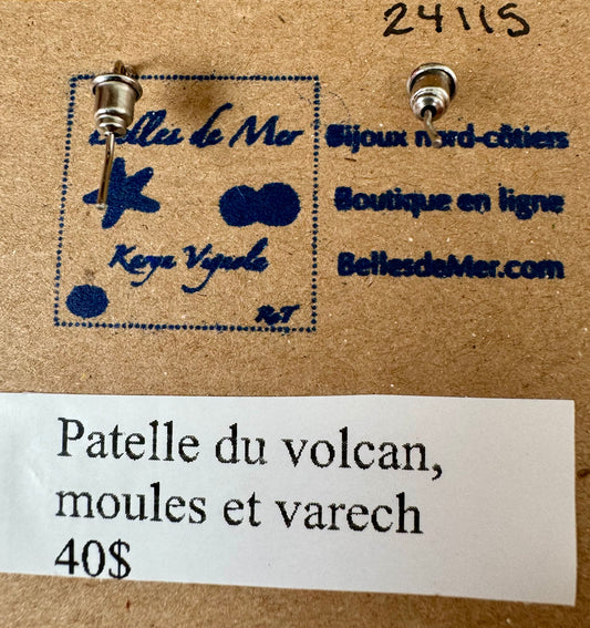 Boucles d'oreilles écorce de bouleau, coquillages de pétoncles et moules